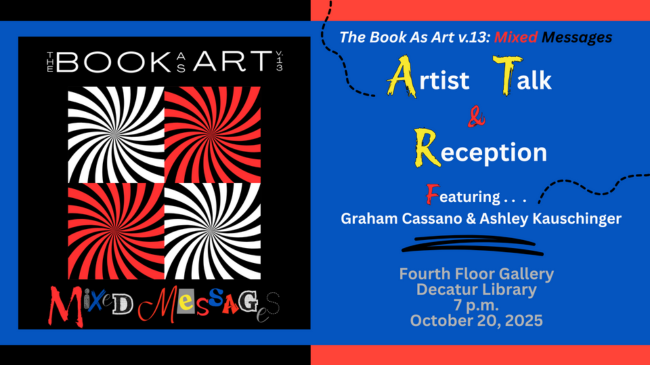 Explore The Book As Art v.13: Mixed Messages and learn more about this upcoming show, which will be installed September 12th — October 25th, 2025, on the Fourth Floor of the Decatur Library.